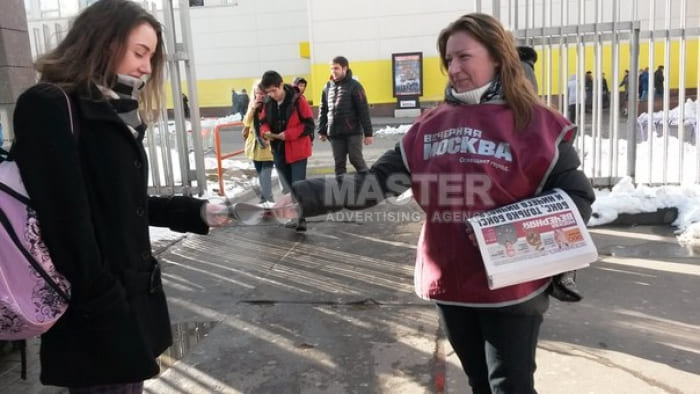 Хорошо продуманный промоушен-план обеспечивает рост популярности товара или услуги, презентуемой в соответствующем сегменте столичного рынка. Учитывая это, агентство «Мастер» использует действующие методы рекламы, реализуя проекты в правильно подобранных местах. В столице территориально выгодными для распространения листовок, буклетов, брошюр, пригласительных и визиток являются улицы с высокой проходимостью, зоны у метро и торговые центры.