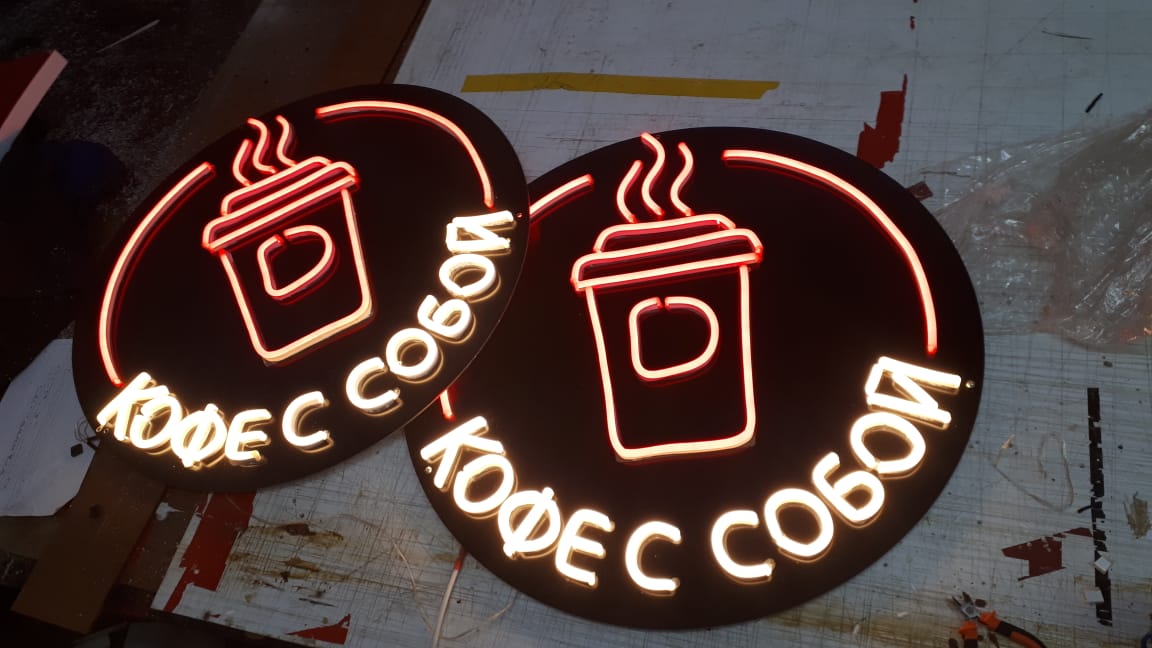 - вывески с контражурной подсветкой;